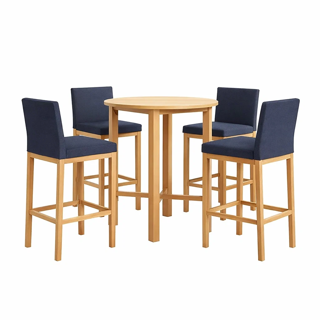 Bar set aus holz mit hockern blau
