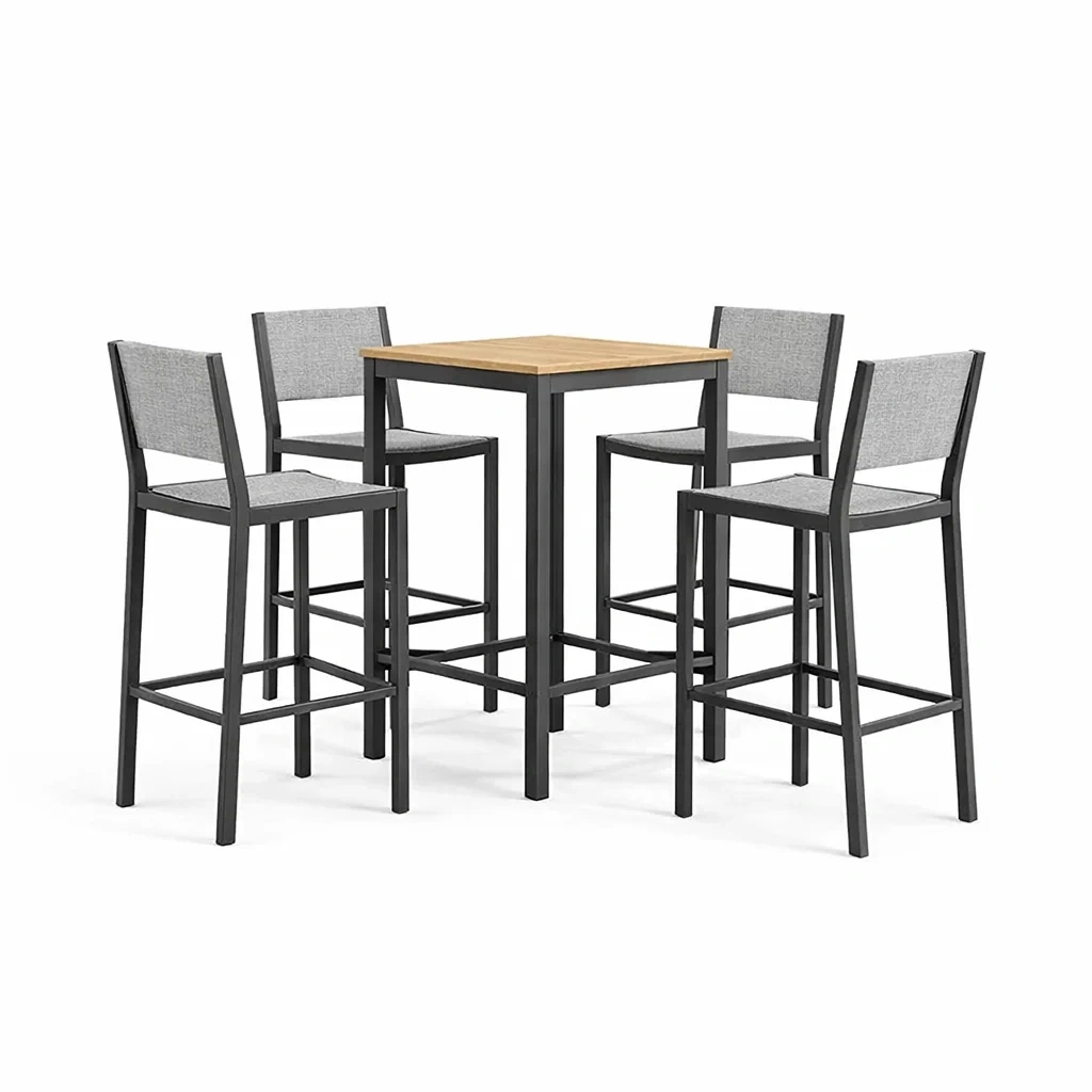 Bar set aus stahl mit tisch und hockern schwarz grau