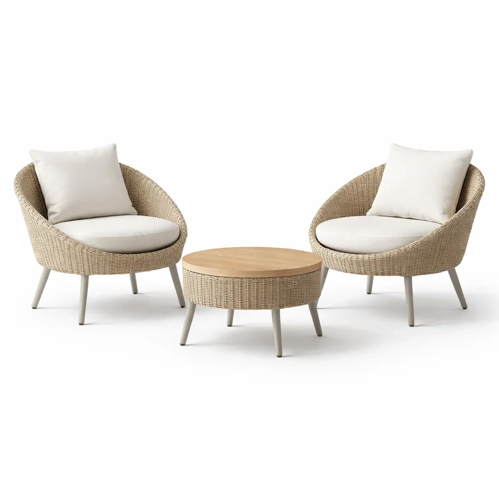 Loungemöbel-Set aus polyrattan mit sesseln und tisch beige