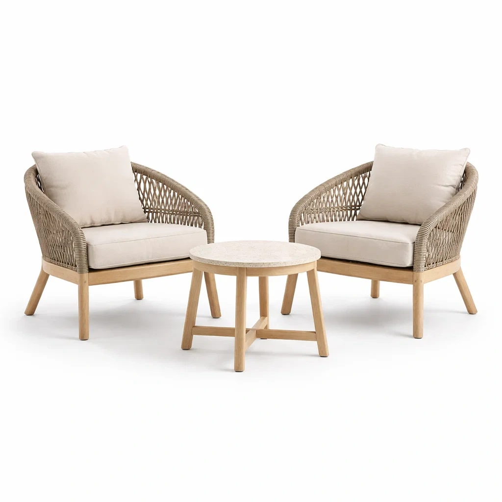 Loungemöbel-Set aus akazienholz sessel und tisch polyester