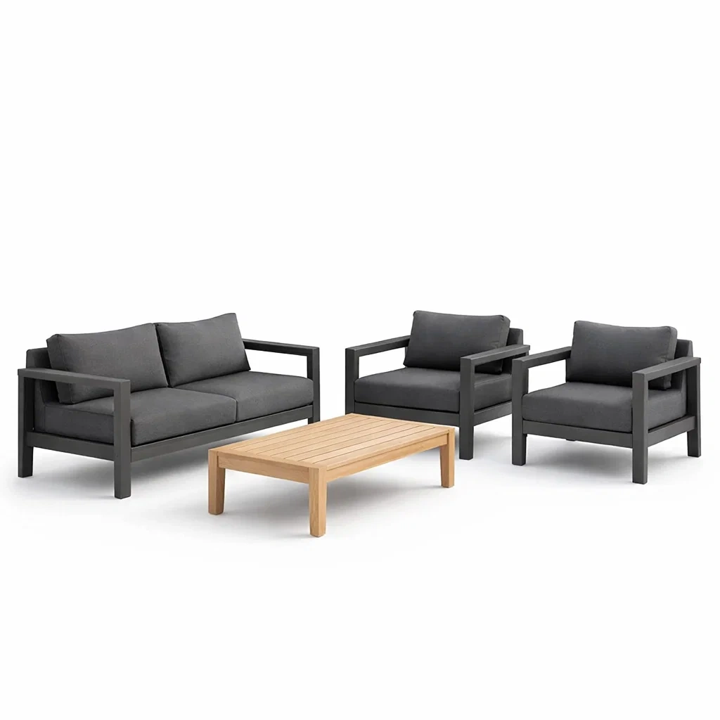 Sofa-set aluminium schwarz anthrazit mit hartholztisch