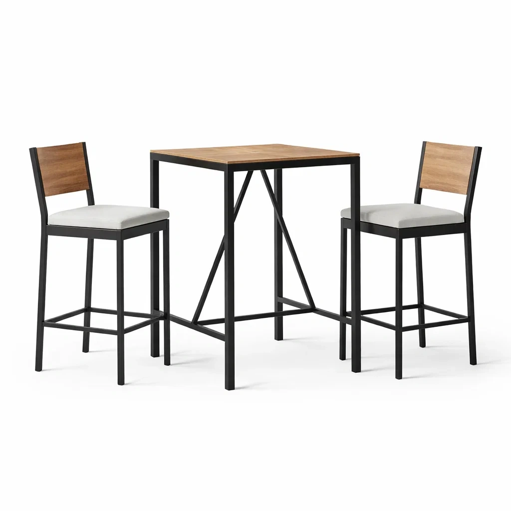 Bar set aus holz und metall braun schwarz