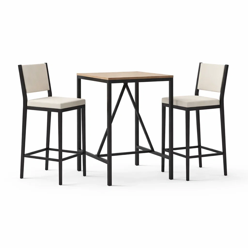 Bar set aus holz und metall schwarz beige