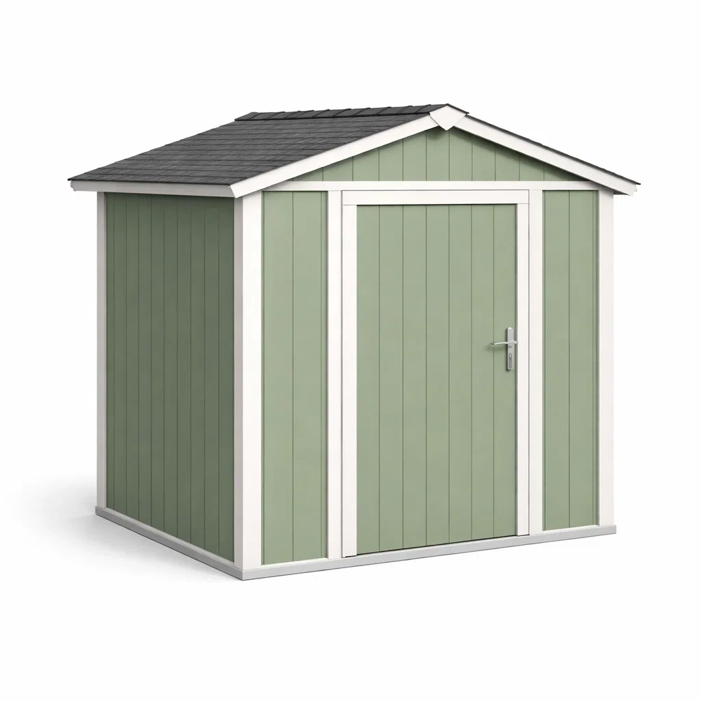 Das Gartenhaus besteht aus verzinktem Stahl für die Wände und einem PVC-beschichteten Dach. Es misst 195 cm in der Länge, 195 cm in der Breite und 215 cm in der Höhe. Die Farbe ist Grün und das Gesamtgewicht beträgt 150 kg. Das Haus verfügt über eine Schwingtür und bietet Stauraum für Gartengeräte und Werkzeuge. Es ist wetterfest, wasser- und UV-beständig.