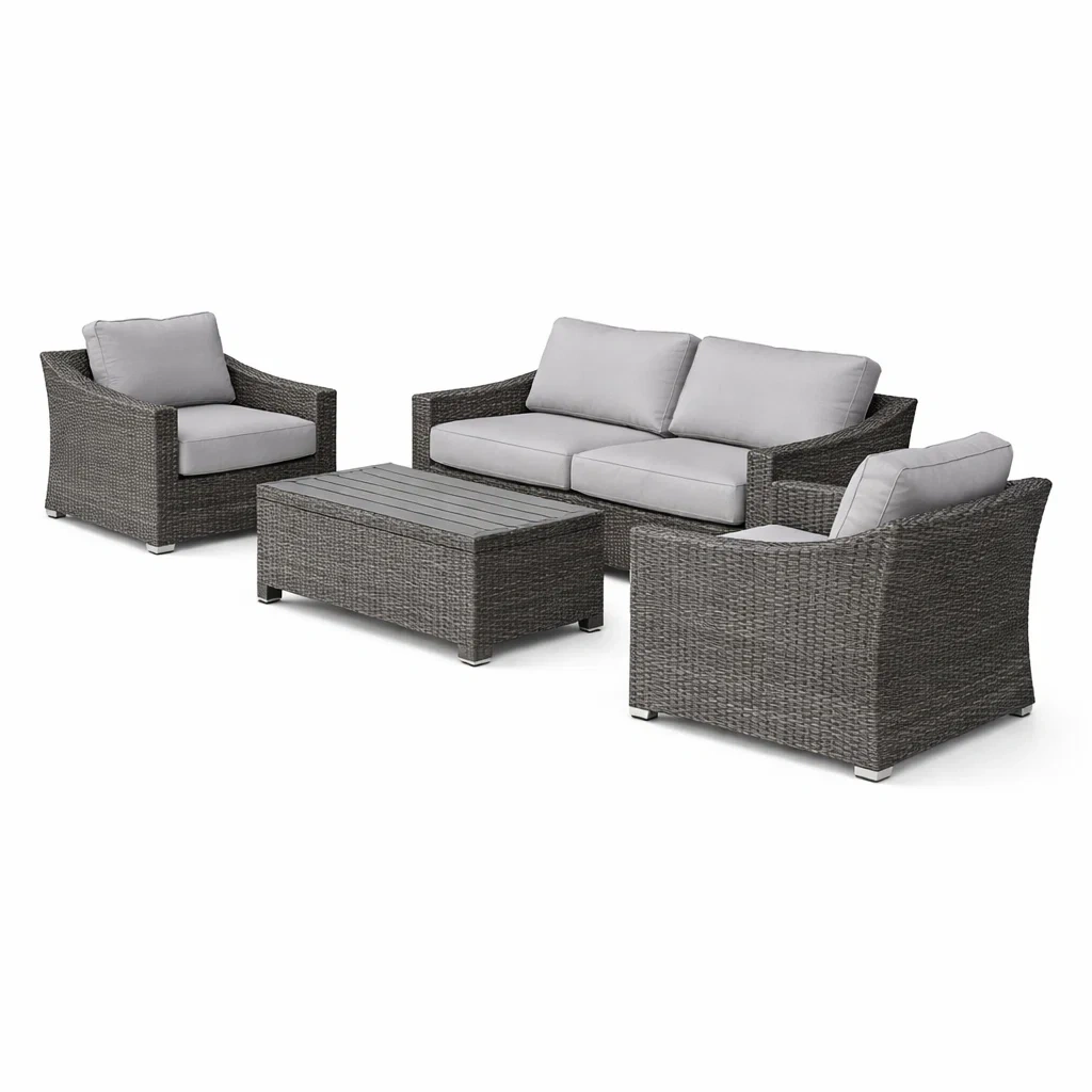 Sofa-set pe rattan grau mit polyesterkissen sofa sessel tisch