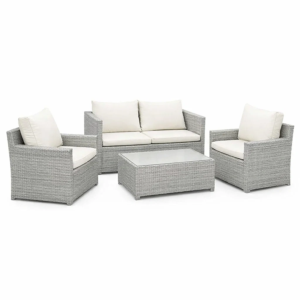 Produkte im Set: 1 Zweisitzer-Sofa, 2 Sessel, 1 Tisch, abnehmbare Kissen